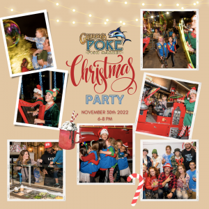 Join us on Wednesday, 11/30/22 as we kick off the Christmas season at Grubby’s Poke & Fish Market! From 6-8pm we will be having fun with Santa’s elves, decorating cookies, enjoying hot cocoa, capturing memories in our photo booth, trying our luck in the raffle, taking rides on the antique fire engine with Carlsbad F.D., and more! All in support of ‘Got Your Back San Diego’ ❤️